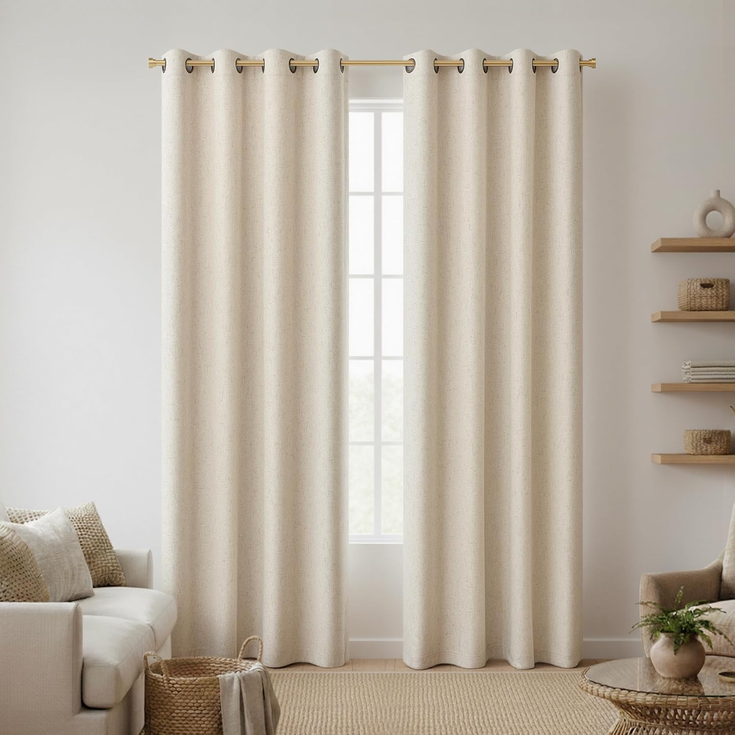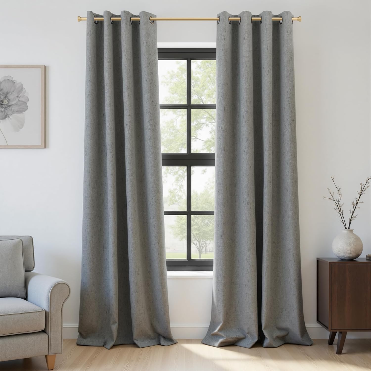 At QmQmok, we know the right window treatments spruce up a room and level up daily life. Our 100% Total Blackout Curtains check all boxes: better sleep, total privacy, big energy savings, crafted for timeless style and unbeatable function.Each QmQmok set has 2 matching panels, ready to hang out of the package for an instant polished window refresh. No fuss, no extra parts—quick, easy setup for a put-together look in minutes.Get true 100% blackout to block all sunlight and mute outside noise, creating a calm dark space for deep restful sleep. Perfect for night shift workers, light sleepers and busy families. QmQmok’s thermal lining regulates room temp, cutting heating and cooling costs all year.Our curtains are made with high-quality textured 100% polyester and professional blackout coating. This unique weave delivers linen-like softness and elegant drape—no wrinkles or steep price tag. It’s QmQmok’s smart long-lasting pick, holding vibrant color and shape for a sleek window upgrade.Installation is a breeze with 8 antique bronze grommets 1.6 inch inner diameter on every panel. The classic bronze finish adds subtle style, gliding smoothly on standard rods—tool-free for an instant elegant finish.Life’s too busy for high-maintenance curtains. QmQmok’s easy-care design means machine wash cold on a gentle cycle. They keep blackout power, color and shape wash after wash, for lasting beauty and real value.Pro Tips for Best Fit: Pick a width a little larger than your window frame for maximum blackout; double-check measurements before buying for a perfect fit; follow the care guide to keep curtains like new for years.Our QmQmok Promise: Your satisfaction is everything. We stand behind our product quality, and our dedicated support team answers all questions within 24 hours—for a smooth stress-free experience every time.