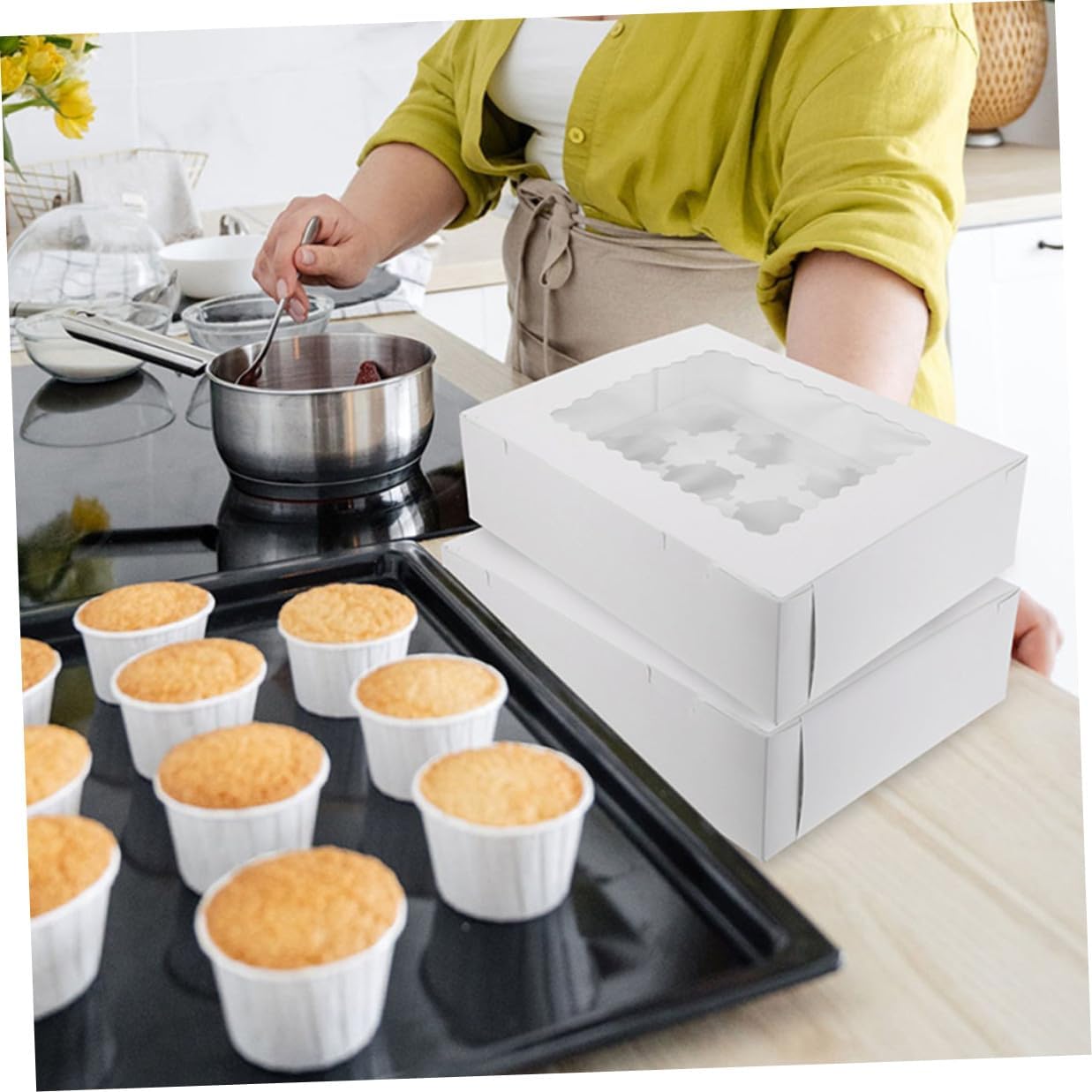 Package Include 10 x Baking Packing Boxes Features -Product Info:Cupcake packaging box -Material: Paper -Size: 32.50X25.00X9.00cm/12.77X9.82X3.54in -Color: White -Very suitable for bakery, grocery store, family use or catering where the egg tart needs to be transported to the event place cupcake case. -Can be used as a to your friends, family and co-worker if they are looking for egg tart packing box cupcake carrier boxes. -You can use it to pack the egg tarts, cakes, cookies and other dessert, very versatile and practical muffin cases. -Made of sanitary and safe material, you can use them with confidence. It also can help you . -It has a simple design, but very practical in use, giving you a cupcake carton.Goods Descriptionpaper bakery carrier Because of the transparent window design, your guests will be able to enjoy a great view of the entire product!.bakery boxes Suitable for storing and packing egg tarts! Using premium paper material, healthy and safe.cupcake clamshell containers This item is an egg tart packaging box