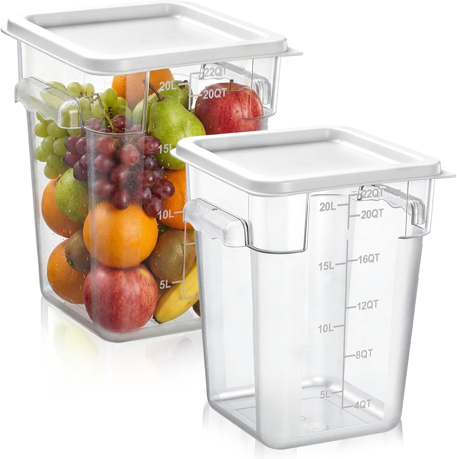 Features: Compact and lightweight: The clear food service container is not too heavy for you to take with you when you should go out, you can take food inside for a camping, barbecue, party and other outdoor activities, allowing you to have a good time. Easy to label: The 8 quart storage container is clear, you can know what is inside easily, and you also can label them on the surface easily. Specifications: Material: polycarbonate Color: Food storage containers: clear Lids and measurements: white Size: about 9.45 x 9.45 x 9.45 inches/ 24 x 24 x 24 cm Capacity: about 8 qt Package includes: 2 x Food containers with measurements Notes: Manual measurement, please allow slight errors on size. The color may exist a slight difference due to different screen displays.