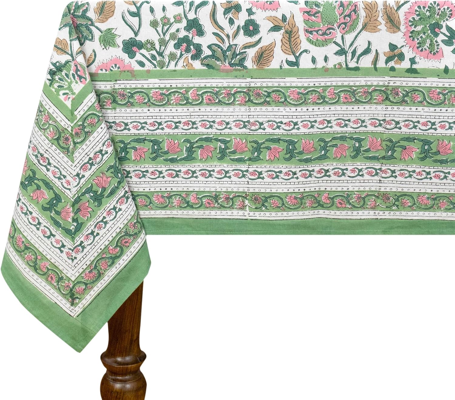 ✨Beautifully handcrafted Wooden Block Printed Cotton Table Cover, created by local artisans of India, designed using classic, ethnic and royal prints as inspirations. Our block printed round tablecloths not only eco-friendly but also sustainable made using finest quality cottons and best quality organic printing colors.✨This Table Cover is the perfect go-to shot for accessorizing your table. It stands out as a statement piece, delighting the surrounding space with fine aesthetics. Product Details - Design: Floral, Royal & Classic Technique / Print: Wooden Block Printed with Hands Material / Yarn Type: 100% Natural Cotton (Eco-Friendly) ✨Sizes Available - Shape: Rectangle/Square 4 Seater: 60 X 60 inches (150 X 150 Cm.) 4 Seater: 72 X 72 inches (180 X 180 Cm.) ✨6 Seater: 60 X 90 Inches (150 X 225 Cm.) 6 seater: 48 X 102 Inches (120 X 260 Cm.) ✨ 8 Seater: 90 X 90 Inches (225 X 225 Cm.) 8 Seater: 72 X 108 Inches (180 X 275 Cm.) 8 Seater: 110 X 110 Inches (280 X 280 Cm.) ✨ 10 Seater: 72 X 118 Inches(180 X 300 Cm.) ✨ 12 Seater: 72 X 135 Inches (180 X 345 Cm.) 12 Seater: 72 X 140 Inches (180 X 355 Cm.) ✨ NOTE-1 - All our te X tiles are handmade and are worked on by multiple artisans and the product goes through multiple hand-processes. Hence, there could be a very little variation than the actual look from the photos, which indeed is the characteristic of this handmade te X tile giving it an authentic handmade look. ✨NOTE-2 - Actual colors may slightly vary from the colors shown in the pictures due to different monitor screen settings, photography setup with natural lights and the nature of the product, being 100% hand made. ✨ NOTE-3 - Also please note that as per the policy mentioned on Amazon on the product page, any import duty, taxes occurBlue in the client's country will be borne by the client. Normally it does not occur. Thank You very much for visiting our store.