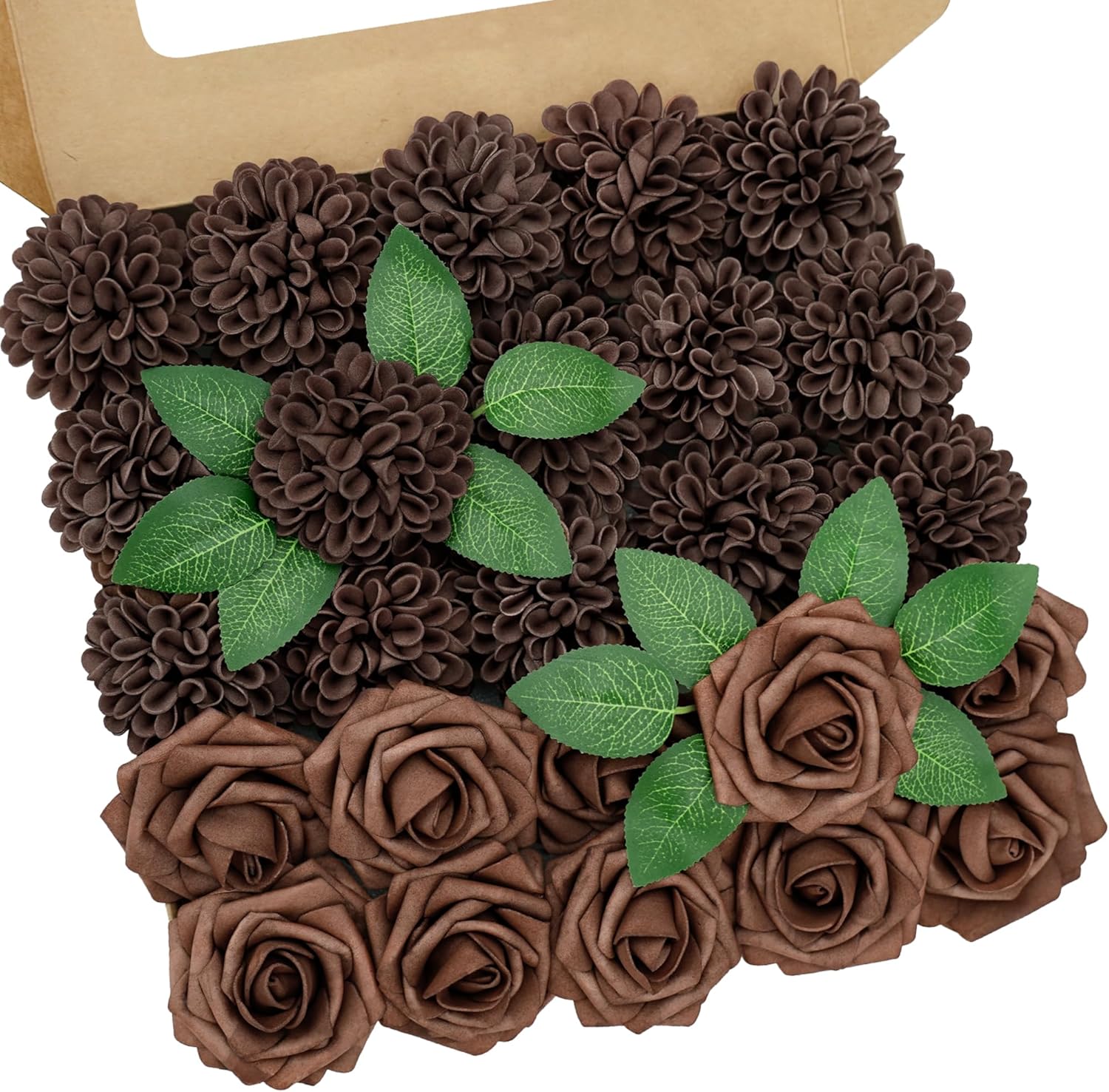 • The total height of each dark teal artificial flowers in the artificial dahlia flower box is about 25cm/9.84inches, dahlia head size is about 7.2cm/2.8inches, the length of the stem is about 21cm/8.26inches. The dark teal flowers artificial box comes with 8pcs bright green leaves to make the dahlia fake flowers more real and vivid.