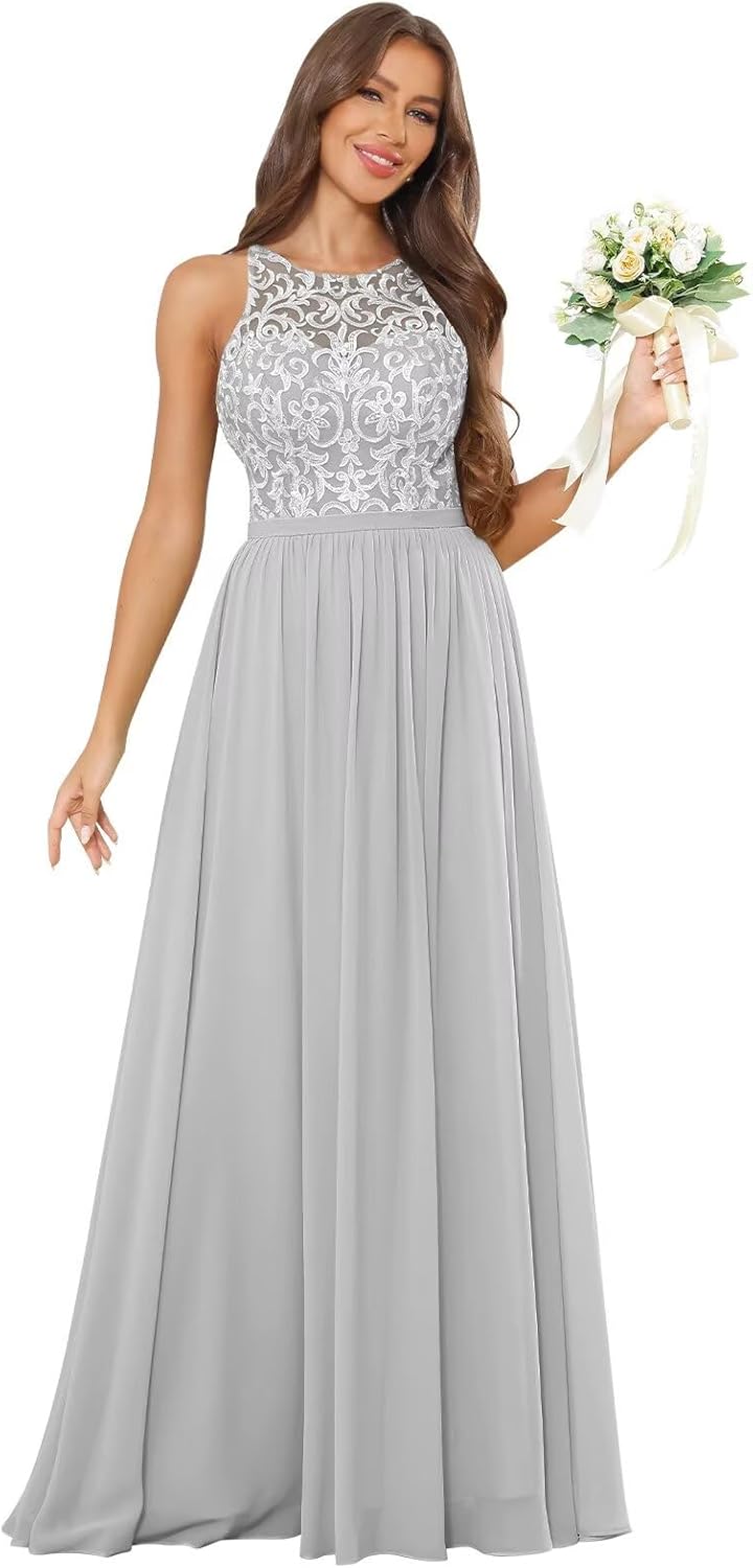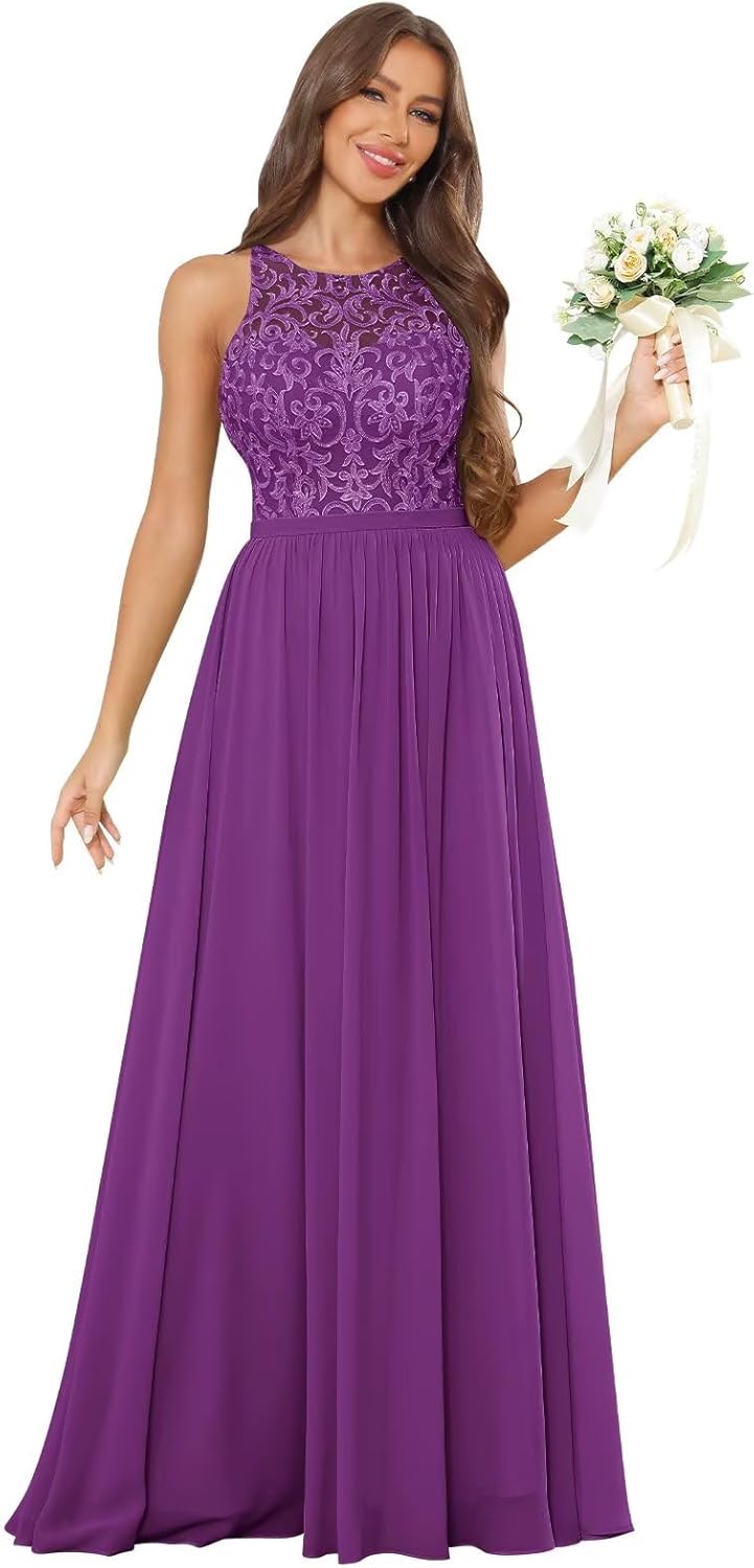 Welcome to Our Store. Description: Our stores is focused on selling prom dresses, bridesmaid dresses, wedding dresses, formal dresses,homecoming dresses, evening dresses. Material: Chiffon Lace Bridesmaid Dresses Feature: Halter Neckline: Round Neck Closure: Corset Back Sleeve Length: Sleeveless Dress Length: Long If you want custom size, Please provide the following measurements and requirements after placing your order. 1. Bust___inch or___cm. 2. Waist___inch or___cm. 3. Hips___inch or___cm. 4. Shoulder to Shoulder___inch or___cm. 5. Waist to floor(Waist to Feet)___inch or___cm. 6. Hollow to floor(Shoulder to Feet without heels on)___inch or___cm. 7. Height___inch or___cm. 8. The height of your heels___inch or___cm. Please note: 1: Please be aware that colors might look slightly different in person due to camera quality and monitor settings. 2: There would have around slight deviation inches size difference due to different manual measurement.