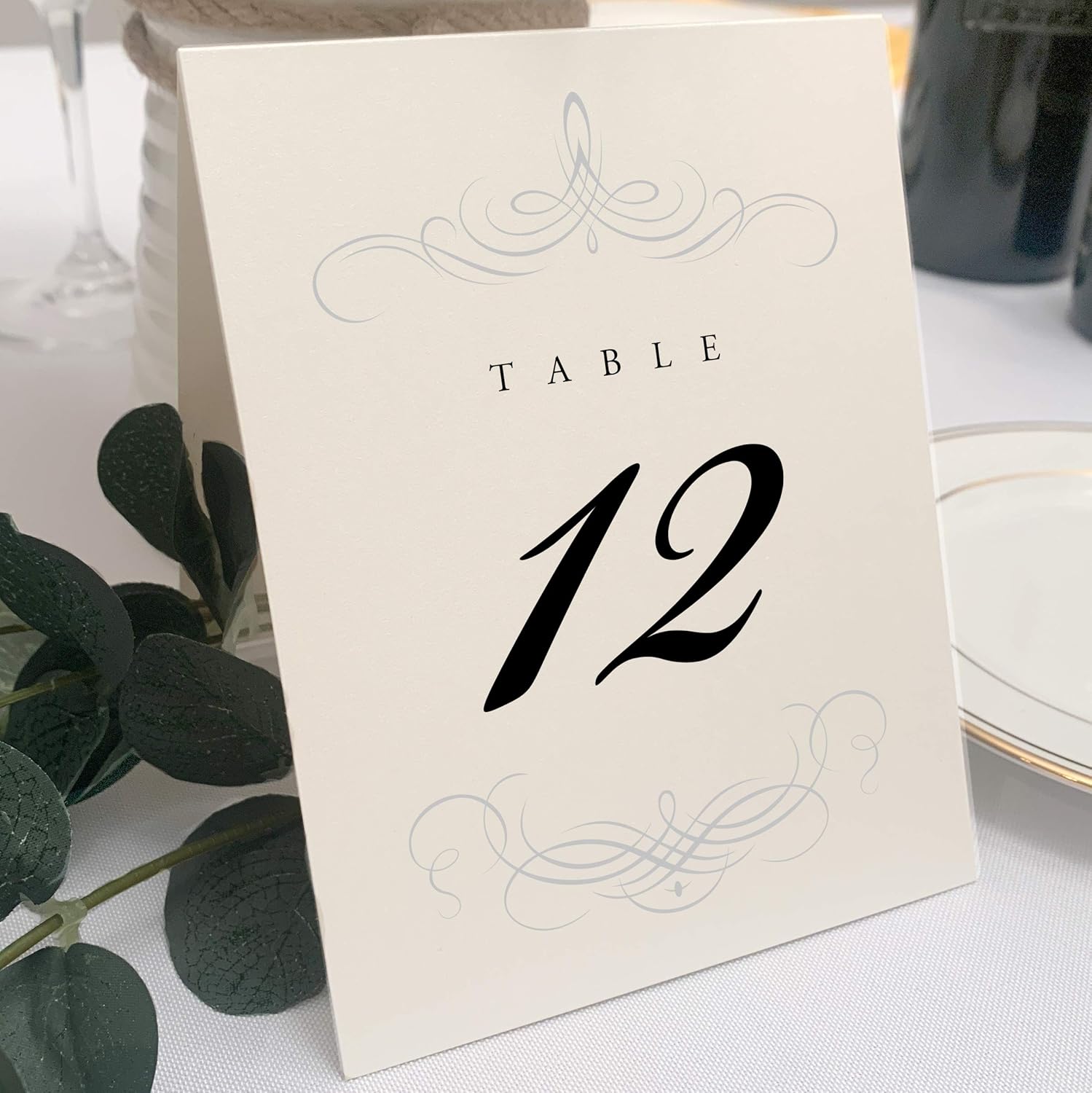 Decadent Flourish Wedding Table Numbers (Select Color/Quantity), Champagne, Gold, 1-20, Double Sided, Tent or Use in a Stand, Great for Parties & Restaurants - Made in the USA