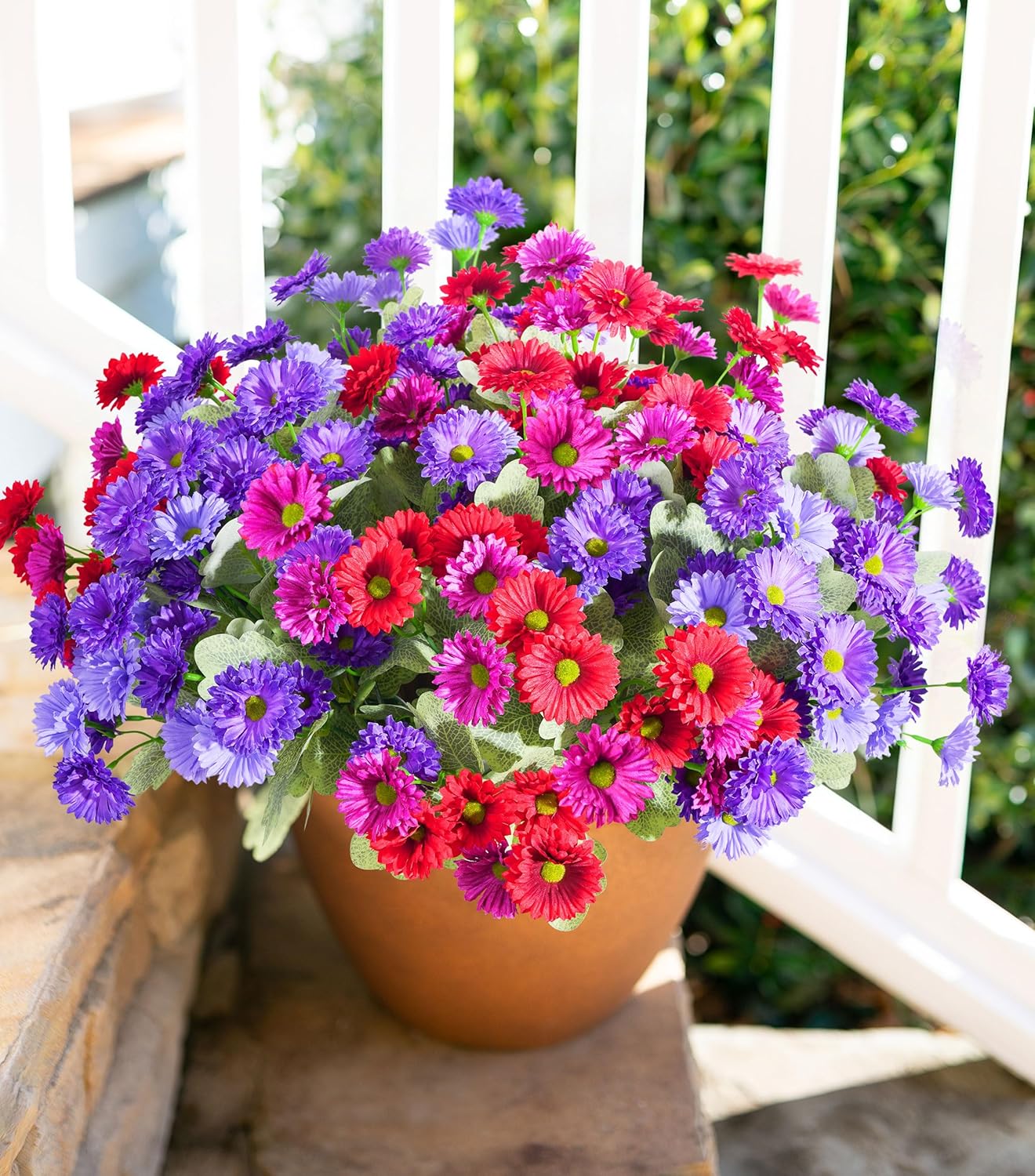 Versatile Indoor & Outdoor Decor: Perfect for adding a splash of color to your patio, garden, porch, window box, yard, or hanging basket. These silk flowers for outside are also ideal for indoor use in planters, vases, or as table centerpieces. Whether for daily decoration or special events, these UV resistant artificial outdoor flowers effortlessly elevate any space.