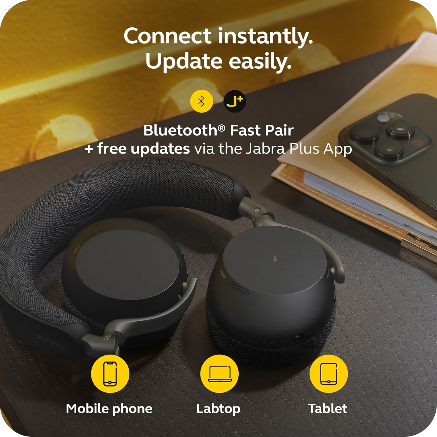 Jabra Evolve3 75 On-Ear Wireless Bluetooth Headset with Microphone for Work, USB-C, AI Voice Call Technology, Advanced Active Noise Cancellation, 22-Hour Battery, Microsoft Teams Certified, Black