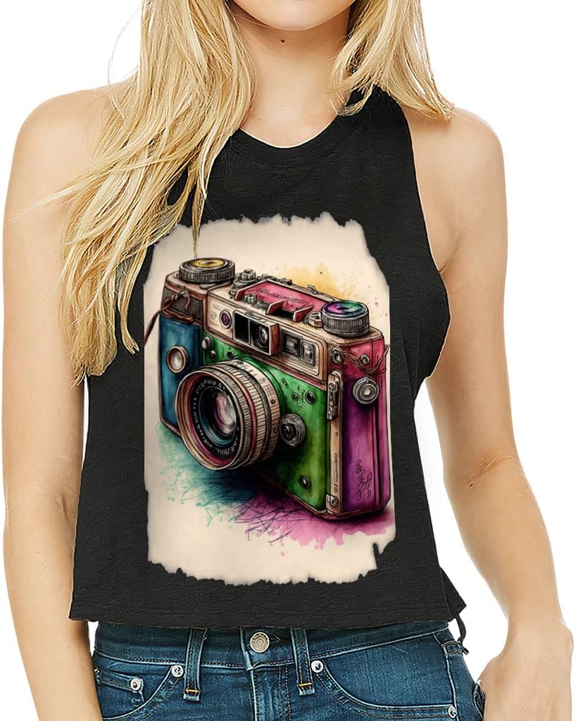 Cute and flattering Retro Camera Racerback Cropped Tank is suitable for most indoor or outdoor activities, such as gym, yoga, running, hiking, beach or relaxing around the house. Pair Paint Women's Tank with your favorite sports bras, especially strappy ones, and high-waisted leggings, then you will enjoy cool and comfortable exercise throughout the summer.