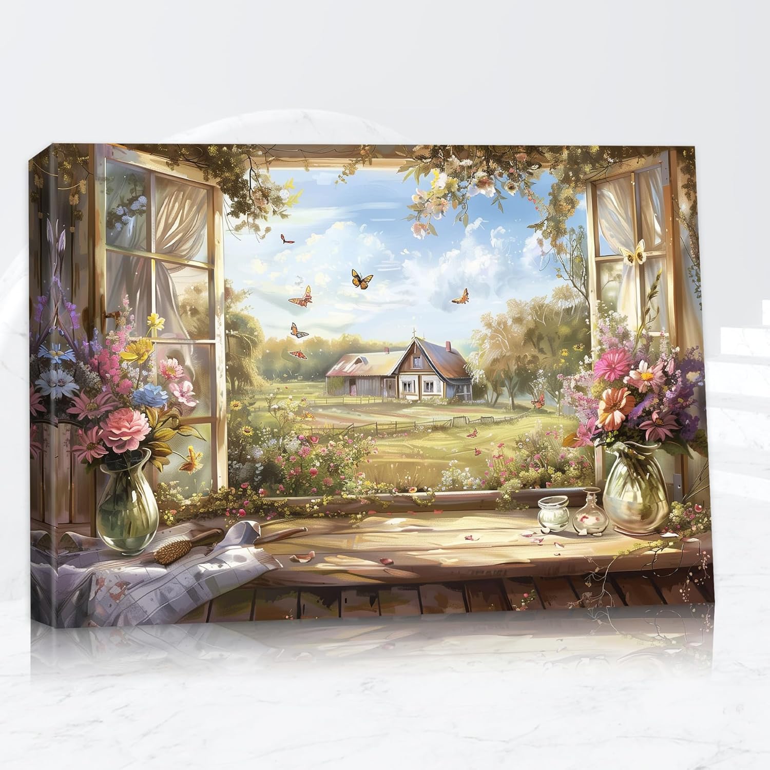 "Enhance your home with the timeless charm of our Rustic Barn Canvas Wall Art. Measuring 40x28 inches, this Farmhouse Barn framed artwork is printed on premium, fade-resistant canvas, ensuring vibrant colors and sharp details that bring your rustic wall decor to life. Featuring a beautiful old barn scene complemented by delicate flower accents, this piece captures the essence of farmhouse wall art and French country style. The serene imagery and rustic design make it a versatile decor piece, perfect for adding warmth and character to your living room, kitchen, or bedroom. Our rustic barn canvas wall art comes ready to hang with pre-installed hooks, providing a hassle-free setup. It's an excellent addition to any rustic or farmhouse-themed space and also makes a thoughtful gift for loved ones who appreciate charming and nostalgic decor. Transform your home with this stunning barn picture wall art and enjoy the tranquil beauty of the countryside every day."