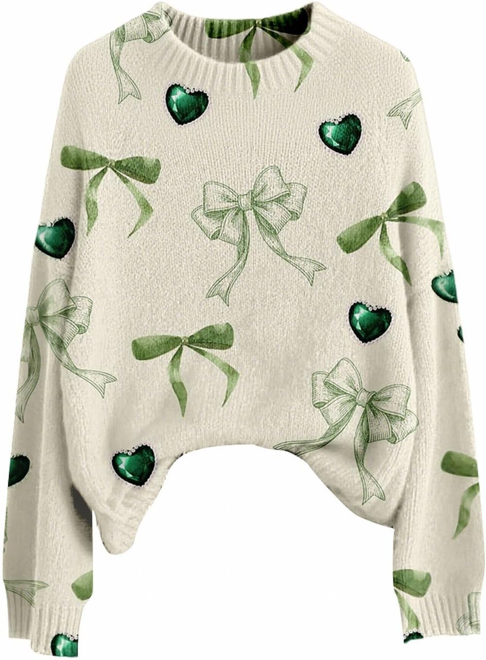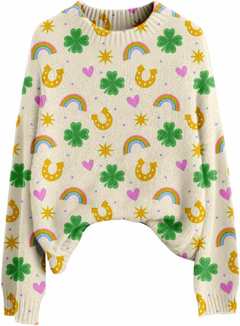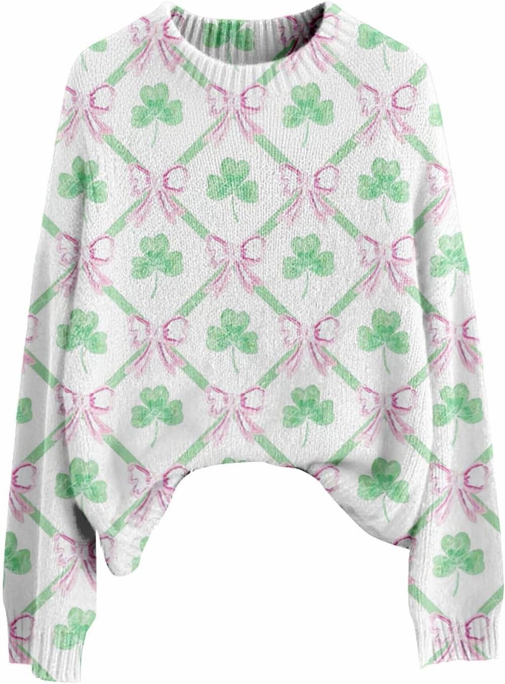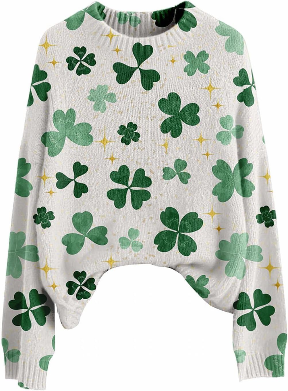 Womens Crewneck St Patricks Day Lightweight Sweaters Irish Shamrock Knitted Long Sleeve Pullover Sweaters