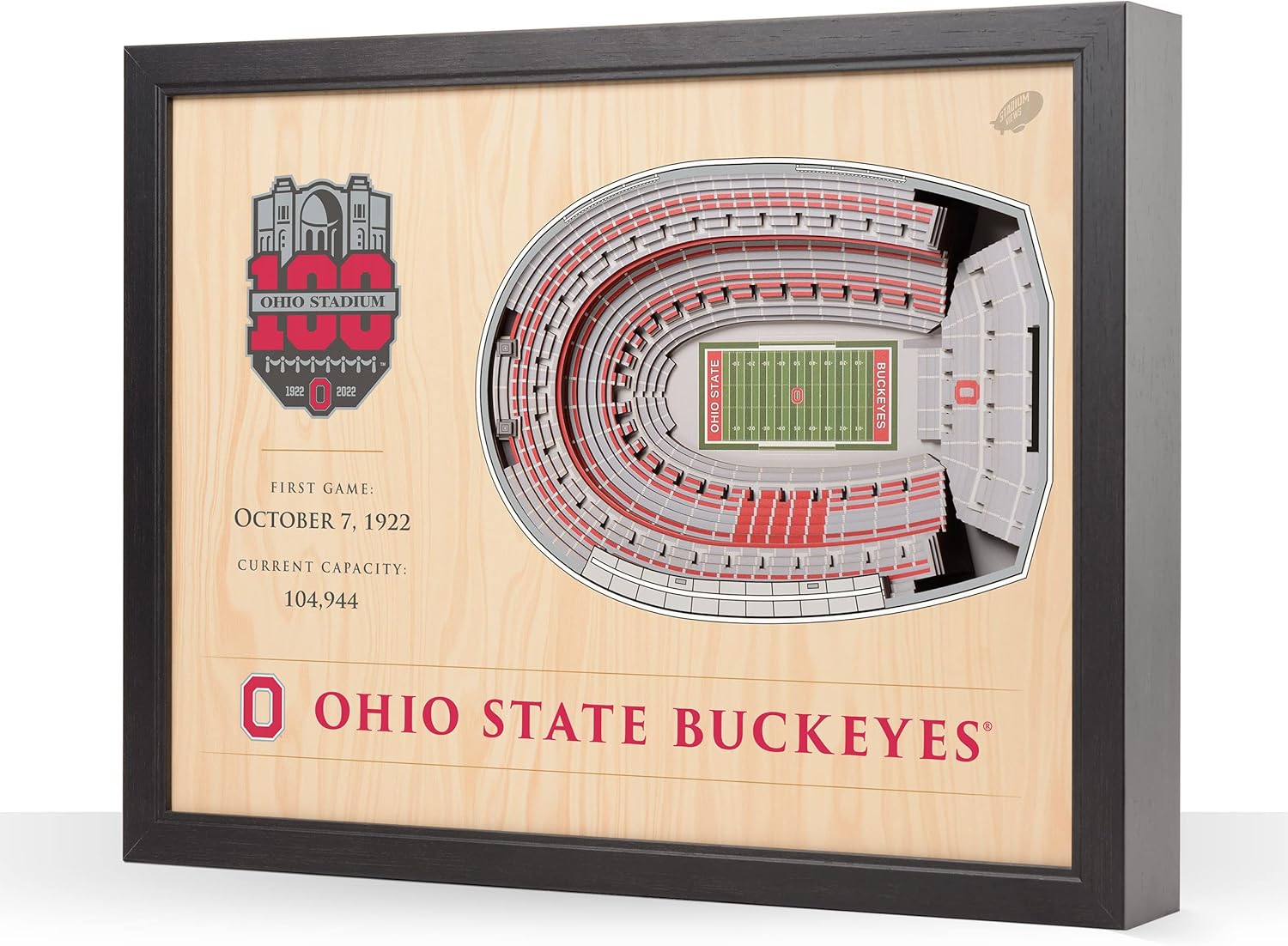 The 25-Layer StadiumViews 3D Wall Art stadium replica of your team's stadium is hand crafted from engineered wood. These heirloom quality works of layered wall art are a full three inches deep, bursting with detail, and are finished with a dark brown wood composite frame that includes hardware for hanging. A superb gift for the devoted fan that truly inspires admiration.